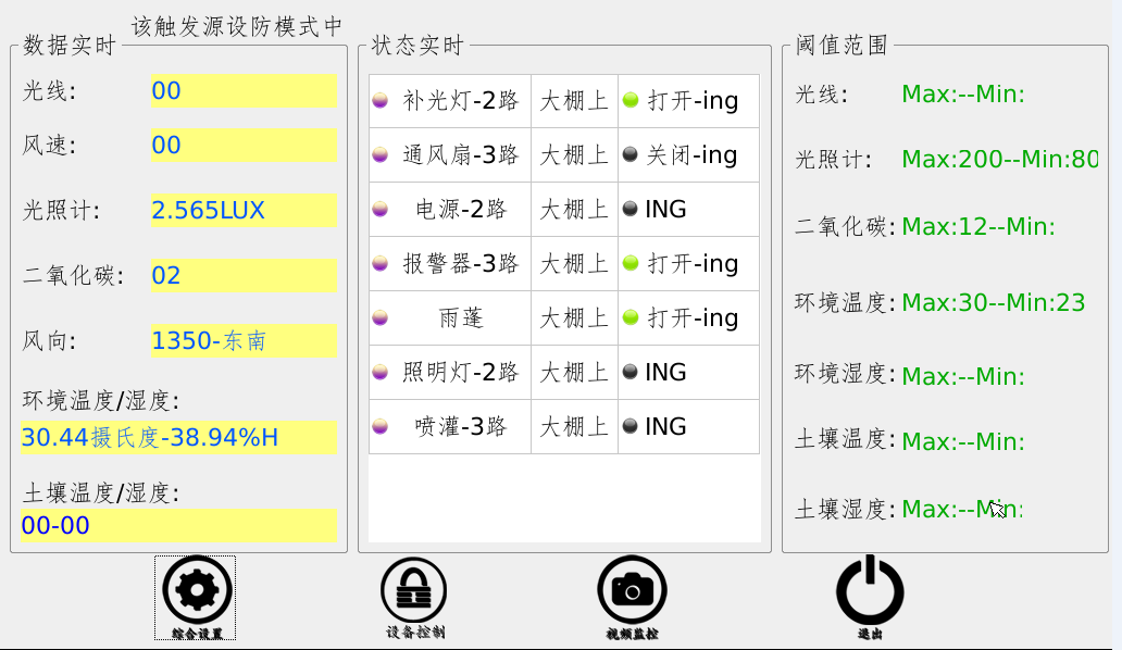 具有傳感器與執行器的聯(lián)動(dòng)設置功能。設置傳感器的上、下限值,以及當傳感器采樣低至下限或高至上限時(shí),執行器的動(dòng)作,可實(shí)現:(1)大棚內溫度自動(dòng)調節功能,(2)大棚濕度自動(dòng)調節功能,(3)土壤濕度自動(dòng)調節功能,(4)光照強度自動(dòng)調節,(5)大棚CO2濃度自動(dòng)調節等功能。