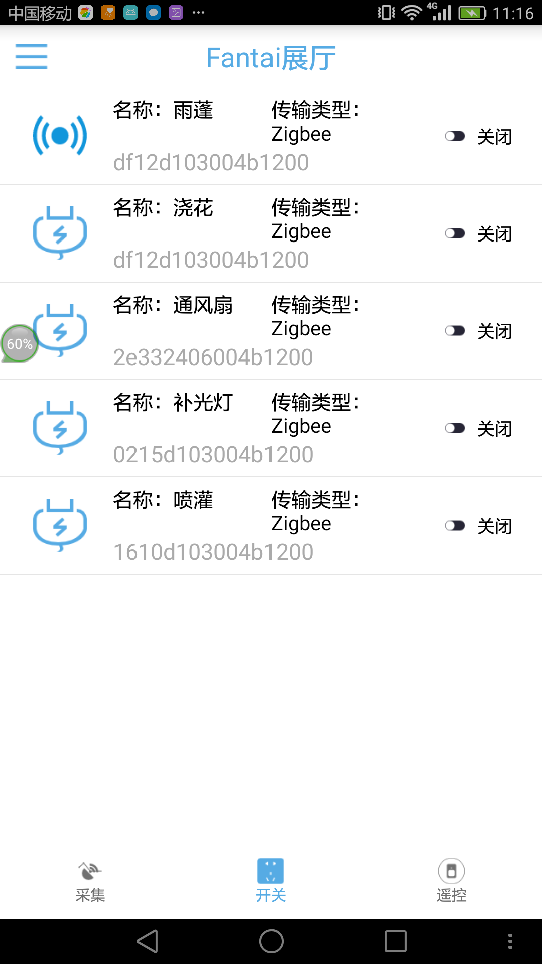 功能:支持315M、433M、紅外等無(wú)線(xiàn)頻段的轉發(fā),通過(guò)智能遙控器,統一接入ZIGBEE網(wǎng)絡(luò ),由物聯(lián)網(wǎng)網(wǎng)關(guān)統一管理。 由ZigBee通訊模塊、315/433MHz微功耗超外差無(wú)線(xiàn)收發(fā)模塊、紅外收發(fā)模塊、以及控制主板組成; 控制主板:采用51單片機,具有射頻、紅外、ZigBee信號收發(fā)功能,射頻編解碼壓縮算法保證低數據量傳輸; 紅外收發(fā):內置7個(gè)紅外發(fā)射頭,多方位水平發(fā)射,保證每條命令準確送達,可學(xué)習并遙控多種紅外設備,直線(xiàn)距離約8米; 射頻收發(fā):包含315/433射頻硬件,可學(xué)習并遙控多種射頻設備,直線(xiàn)距離約8米; 紅外頻率:38KHz; 射頻頻率:315/433MHz; ZigBee頻率:2.4GHz,Z-Stack2007協(xié)議棧; 輸入電壓:DC 5V; 輸入電流:≥1A。  |