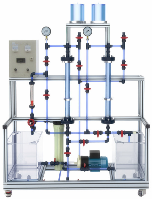 一、裝置功能 1、 了解離子交換進(jìn)行水處理的流程; 2、裝置采用串聯(lián)復合床,可以實(shí)現交換產(chǎn)水、反洗、再生、正洗等操作; 3、管路內實(shí)驗介質(zhì)流動(dòng)狀態(tài)全程清晰可視...