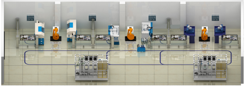 LGJ-ZZ02型 智能機器人個(gè)性化訂制綜合生產(chǎn)線(xiàn)由數控車(chē)床加工單元、數控銑床加工單元、數控雕刻加工單元、自動(dòng)化立體倉儲單元、工業(yè)機器人上下料單元、AGV運載單元、監控單元等多個(gè)功能模塊單元組成。