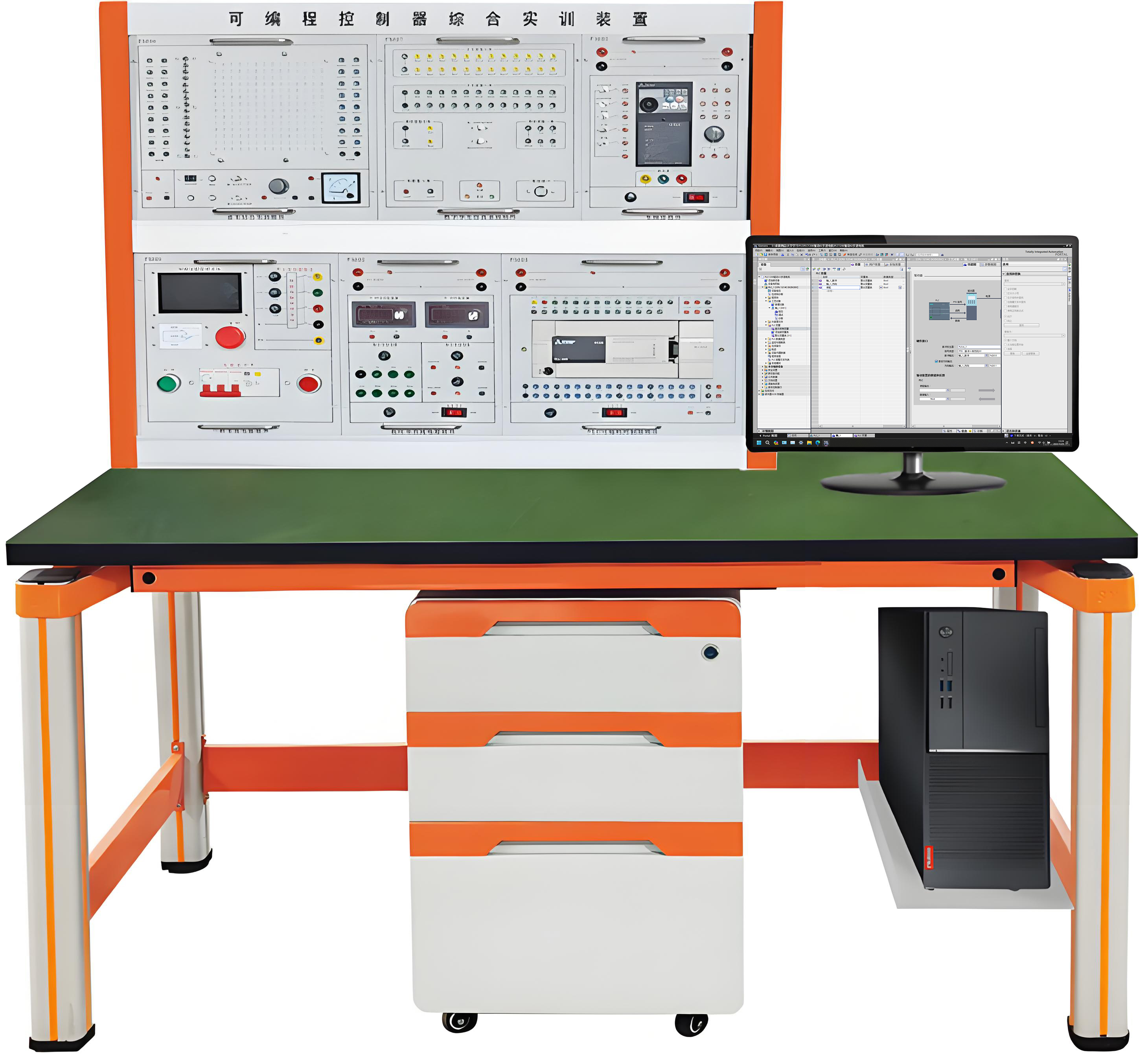 本實(shí)訓臺由實(shí)訓掛件、實(shí)訓桌、實(shí)訓儲物柜三大部分組成。