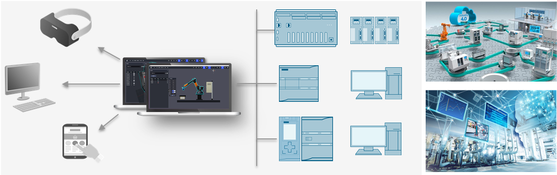 LG-TVP01型 數字孿生系統能夠從虛擬機械設計、虛擬電氣接線(xiàn)再到虛實(shí)互動(dòng)編程,虛擬調試以及集成調試的整個(gè)過(guò)程,同時(shí)配置XR互動(dòng)仿真,能夠實(shí)現多人協(xié)作的沉浸式應用,TVP系統具有多種仿真和組合方式,支持半實(shí)物、全虛擬、以及3D互動(dòng)的編程方式。